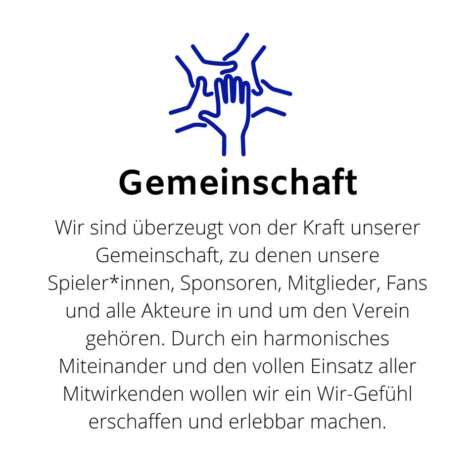 Unsere Werte bilden einen festen Bestandteil innerhalb unseres Vereins. Sie dienen uns als Orientierung für die nachhaltige Entwicklung, sowie als Fundament für den Zusammenhalt und den Umgang im Verein.