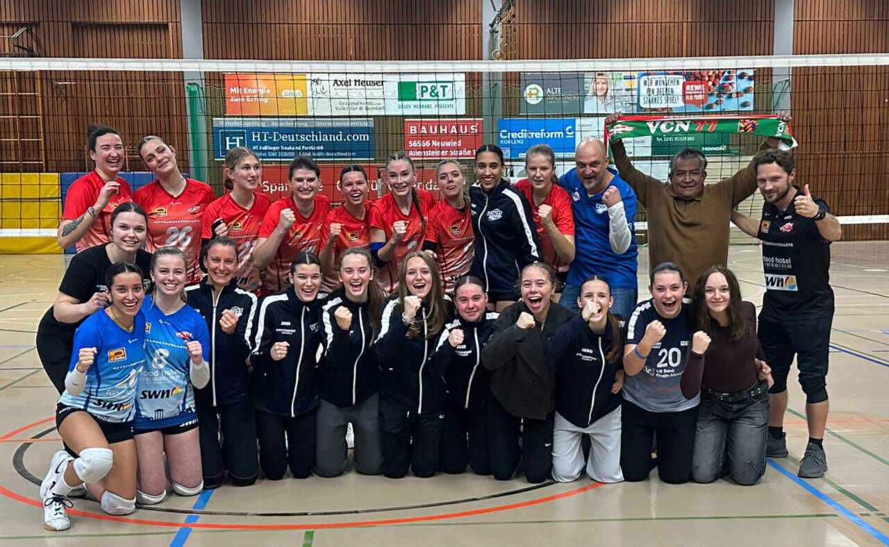 Am Samstag, den 08.11.25, hatte unsere Regionalliga Damenmannschaft eine kurze Anfahrt zu ihrem Auswärtsspiel. Erstmals mussten die VCN Damen zum Regionalligaderby in der Sporthalle am Mallendarer Berg beim Neuling TV Vallendar antreten. Vor einer tollen Zuschauerkulisse legte das VCN Team gleich im ersten Satz furios los und erspielte sich einen 13:4 Vorsprung. Nach und nach holte das Vallendarer Team vor allem durch eine starke Mitte auf.