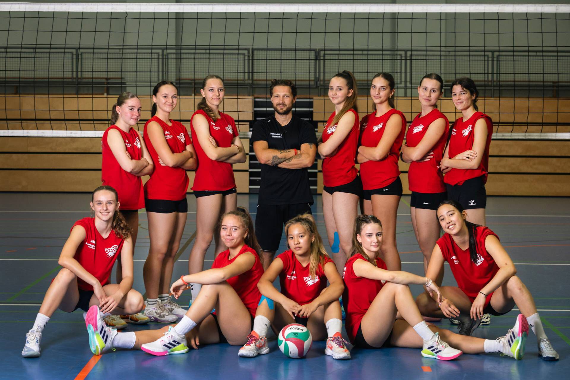 Die Spielerinnen hinter Reihe v.l.n.r.: Natalie Kraus, Nicole Neufeld, Lili Pauser, Julia von Kielpinski, Carla Ehre, Ly Nguyen, Karina Klum, Christine Walth, Emily Eitelbach, Sandra Hennemann, Alina Serrate, Johanna Schmidt, Djamila Roll mittlere Reihe v.l.n.r.: Sora Shin, Vanessa Nguyen, Julia Reudelsdorf, Milla Holspach, Melina Winzen. Auf dem Foto fehlt Laura Hammes vorne: Trainer David Hück - Reudelsdorf | Fotografin: Norina Toenges